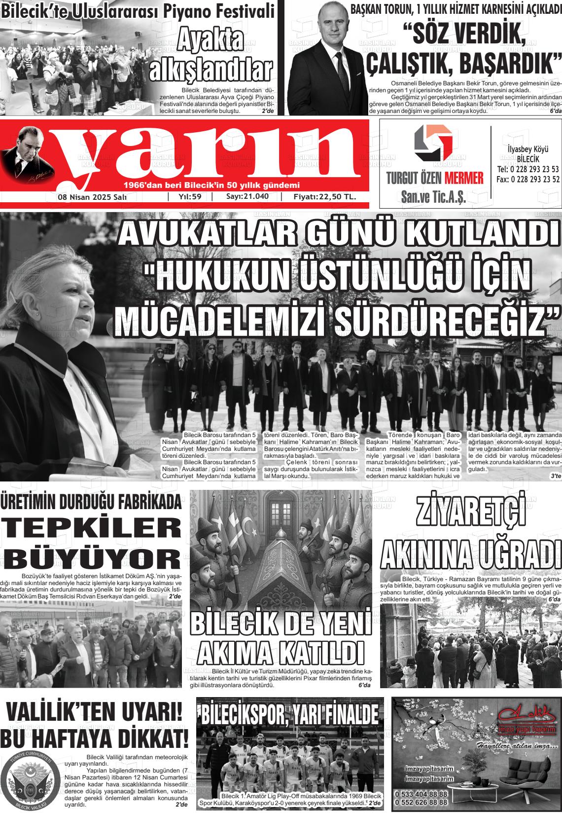 Bİlecİk Yerel Gazeteleri 09 Kasım 2025, Pazar Günü Manşeti