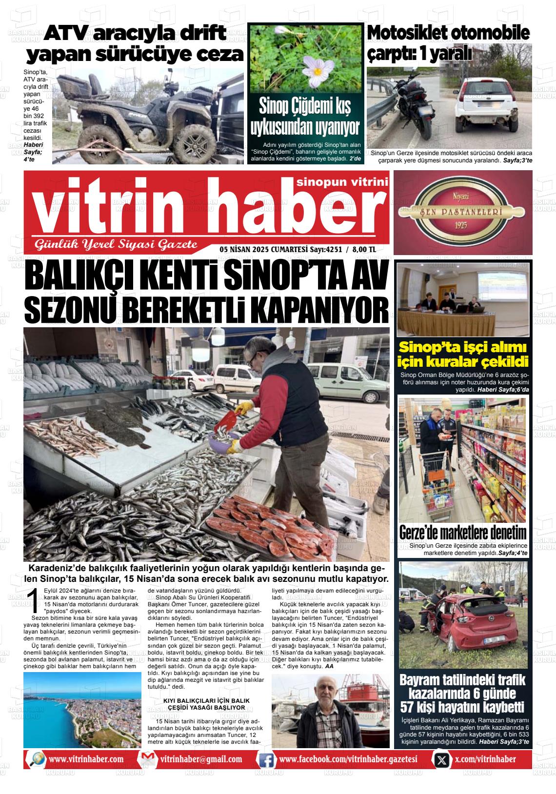 Sİnop Yerel Gazeteleri 09 Kasım 2025, Pazar Günü Manşeti