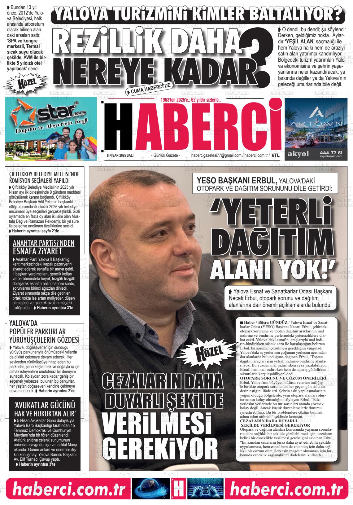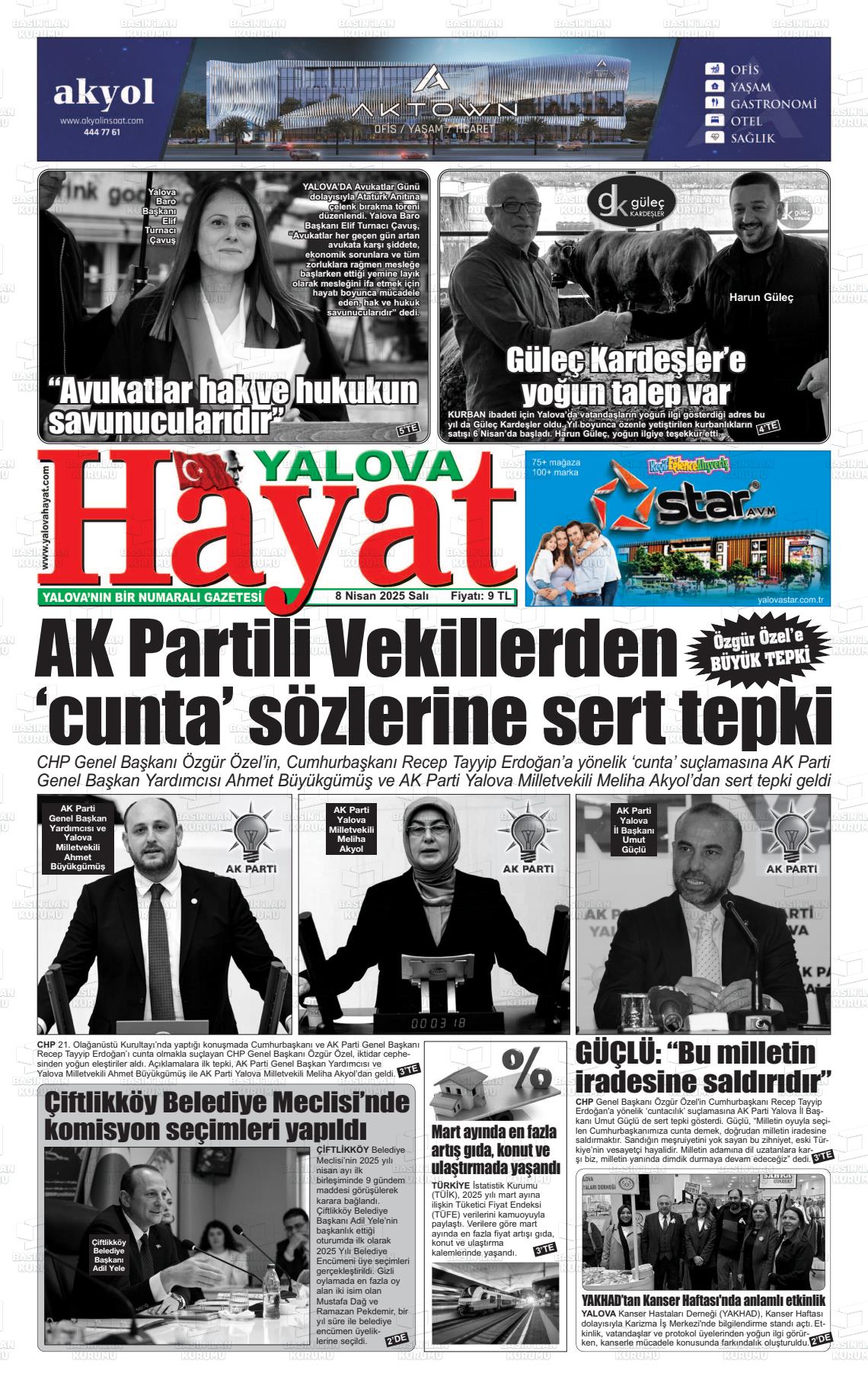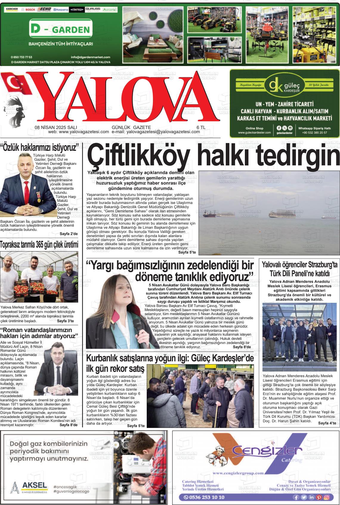 Yalova Yerel Gazeteleri 09 Kasım 2025, Pazar Günü Manşeti